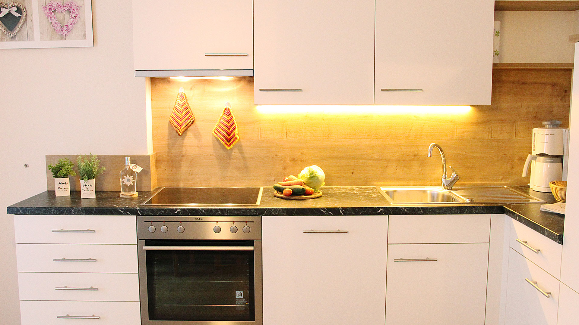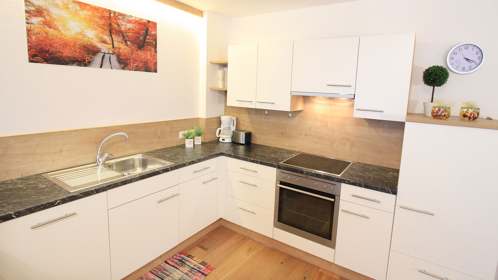 Natürlich werden Sie bei uns auf keinen Komfort verzichten müssen, die Apartments sind neu, großzügig und traditionell eingerichtet. Zimmer, Küche, Bad – alles ist vollständig ausgestattet und wartet auf Sie. Unsere Ferienwohnungen wurden im Juli 2014 neu erbaut und befinden sich im Zentrum des Dorfes.